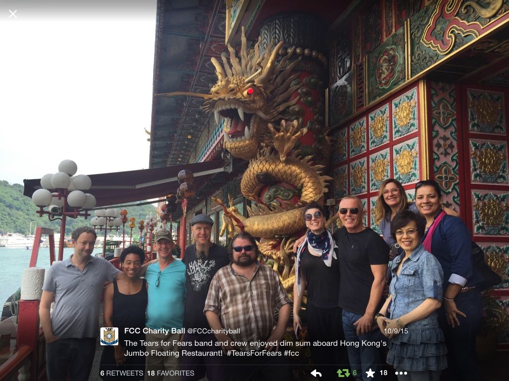 We literally overheard this announcement standing around in the wings prior to the Tulsa show. We didn’t receive confirmation on this concert’s “open to ALL” notification until two weeks ago. The info below was confirmed to us this morning. We do our best to publish accurate information. The last thing we want to do is announce a show then suddenly fans find out (after airfare purchases) that they can’t even buy tickets. Our intention was to wait until the band spoke on it officially/in print. There was a brief tweet, so here’s the official Travel Fan notice that yes, the Charity Ball 2015 hosted by the Foreign Correspondents’ Club in Hong Kong is open to all and will feature Tears for Fears.