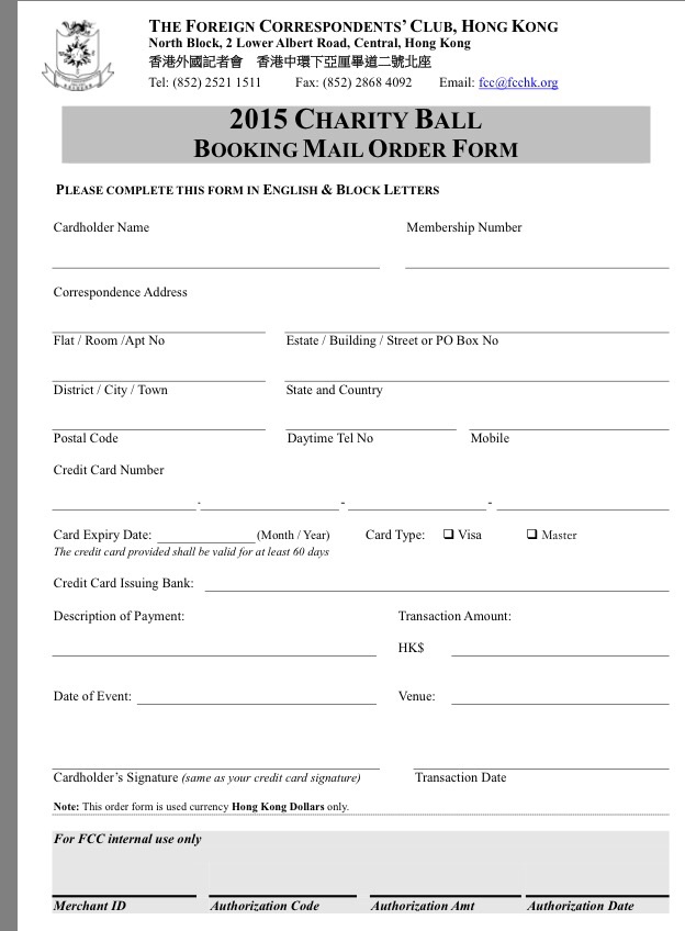 If plan to go, you may want to contact The FCC by emailing charityball at fcchk dot org .