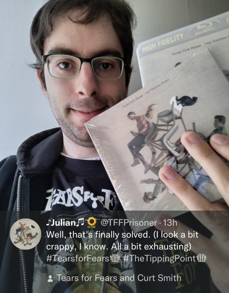 The Tipping Point released right on time. We got it at midnight Friday the 25th – same day as SFTBC in 85. Like New Year’s Day, we watched it come into existence starting in The Philippines with Joyce from the Tears for Fears Phils Kook group and eventually to the states with Andye.