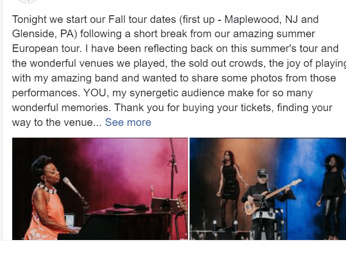 Oleta Adams‘ tour has begun and several fans have their tickets, some having already seen her to start off the autumn months. Her summer tour was amazing and we look forward to supporting her upcoming shows as well.
