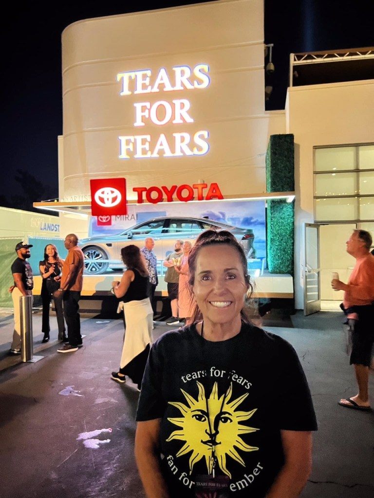 After each show, I try to connect with fans and hear their thoughts. I find that they’re either verklempt in a state of wonderment where they can barely talk because they are so overjoyed by the concert experience or they are detailing nonstop every single element from the show to the point they can barely breathe. There’s always someone with damp hair after dancing so much, one layer of clothing removed and a band shirt over their shoulder or the longtime fan wearing a piece of new merch as they recount everything that just happened…ready to add the experience to their long list of amazing TFF fan moments. Often people are hugging, smooching or walking hand in hand as was the case after the Palm Springs show. I noticed those on the right of me were exchanging phone numbers and going in for the long hugs. There were compliments and praise for people who obviously knew every song and committed to singing each one from start to finish. It was fantastic to see such love. A lady who had flown in leaned over across our front row seats and said to me in a joyful slur of emotion, “Your spirit…it’s amazing! You get it! You understand this band. You didn’t let anything stop you from being here tonight…” she said this and noted my injury. I held her hand for a few seconds and we smiled at each other with that knowing look of ”we just experienced something incredible.” Tears for Fears shows bring out the best in all of us…and can make total strangers the best of buddies by the end of the night.