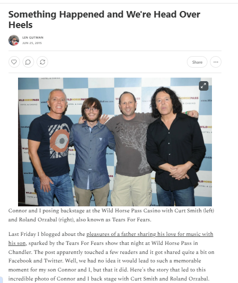 Speaking of discussions and extended conversations… we, like several other long time social media users, have moved on from Meta products. We’re now on Substack. It provides a space for us to explore topics and connect on a less superficial level. We like getting into the nuts and bolts behind the scenes. Notice we didn’t say private lives. We’re not a gossip column and the only tea we’re spilling is the kind you can actually drink (Thank you, Lisa W of TFF Boston). More to come in the next few months. Meanwhile check out this Tears for Fears fan throwback on the platform.